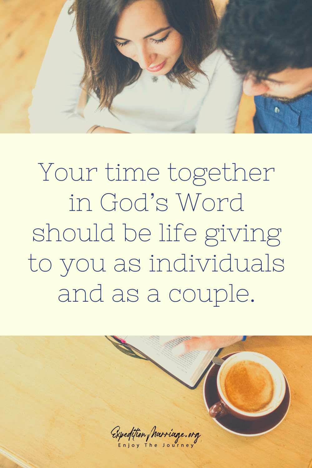 Adjust your mindset. Getting in God’s Word together is a gift, not a chore. It’s not something you have to stress out over doing. Take the pressure off and don’t make it a task that needs to be checked off. Instead, look at it as life for your marriage, the breath that fuels it. As much as you naturally desire your lungs to be filled, desire the same for your marriage. His Word is a good gift. The more you see it as such, the more you will begin to naturally crave it. You don’t have to study it, you get to.